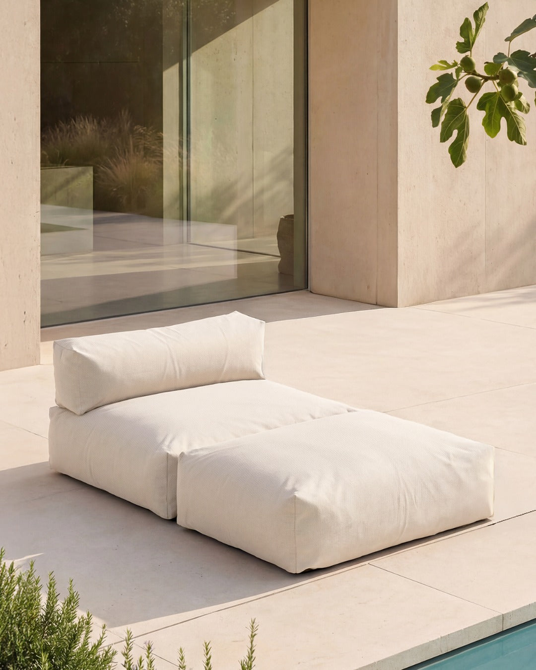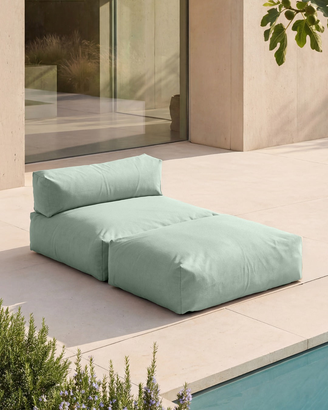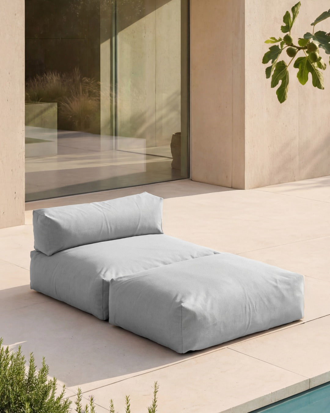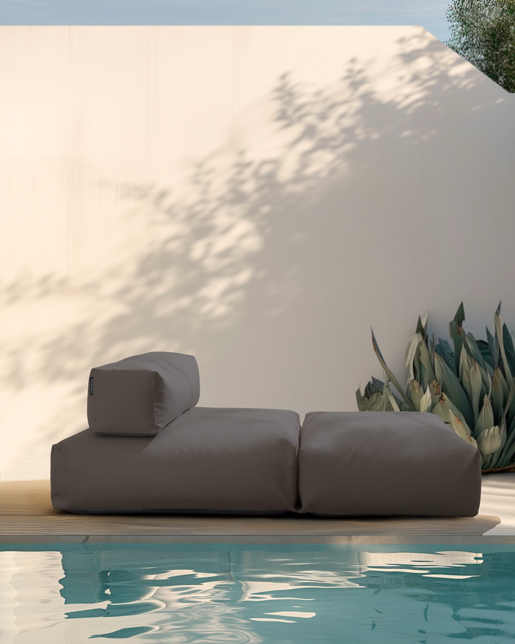 The back cushion has a special coating on the underside that prevents slipping. At the same time, the cushion’s flexibility allows you to adapt the POOLSOFA to your needs. For example, you can change the position of the back cushion and transform the piece from a daybed into a seat.