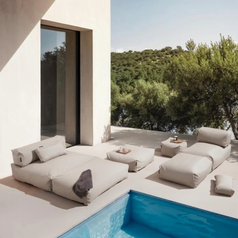 Vous souhaitez encore plus de confort dans votre jardin ? Complétez le matelas de piscine POOLSOFA avec nos poufs d'extérieur. Ce qui les rend uniques ? Polyvalents, ils peuvent être utilisés pour s'assoir ou bien comme petite table, et flottent aussi bien que le matelas de piscine. À utiliser sur l'eau ou sur la terrasse pour encore plus de confort et de détente.