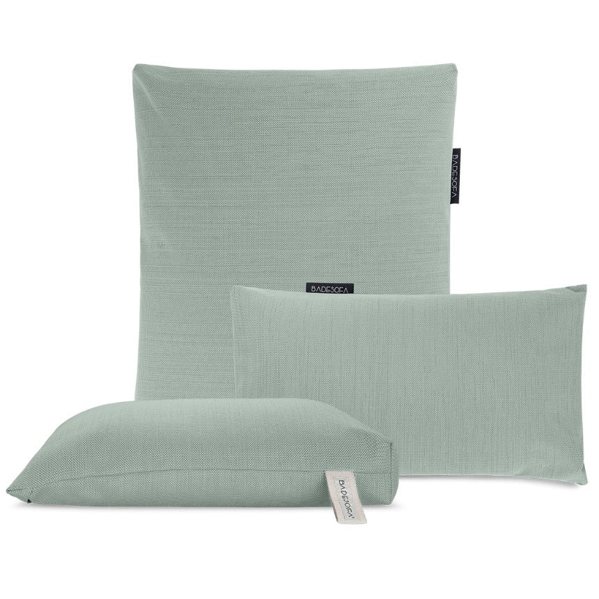 Unsere BADESOFA Kissenhüllen bestehen aus besonders widerstandsfähigem, hochwertigem Outdoorstoff. Sie sind zu 100 % wasserfest, UV-beständig und dank innovativem Finishing resistent gegen Schimmel und Stockflecken – für langanhaltenden Komfort und Pflegeleichtigkeit.