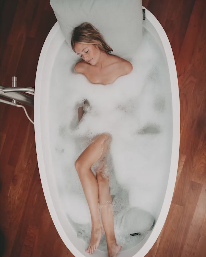 Das Fußkissen gibt Dir zusätzlichen Komfort beim Baden.