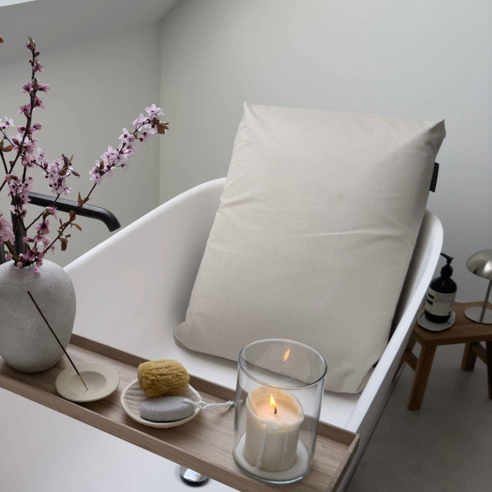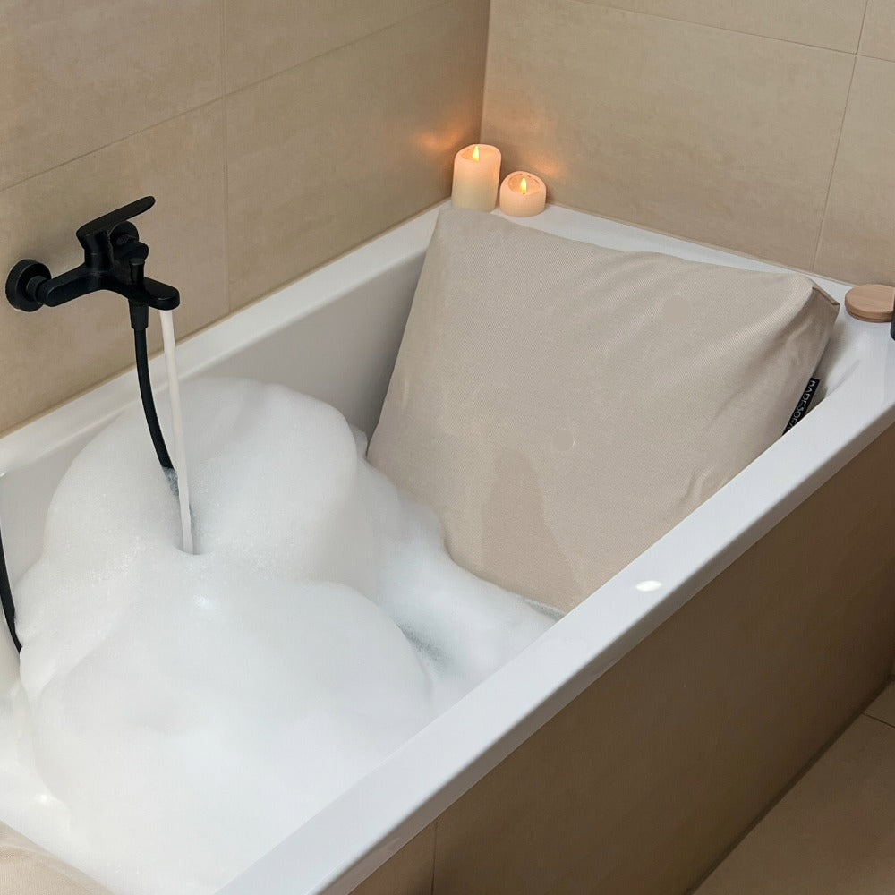 Genieße dein Bad mit einem Rückenkissen.