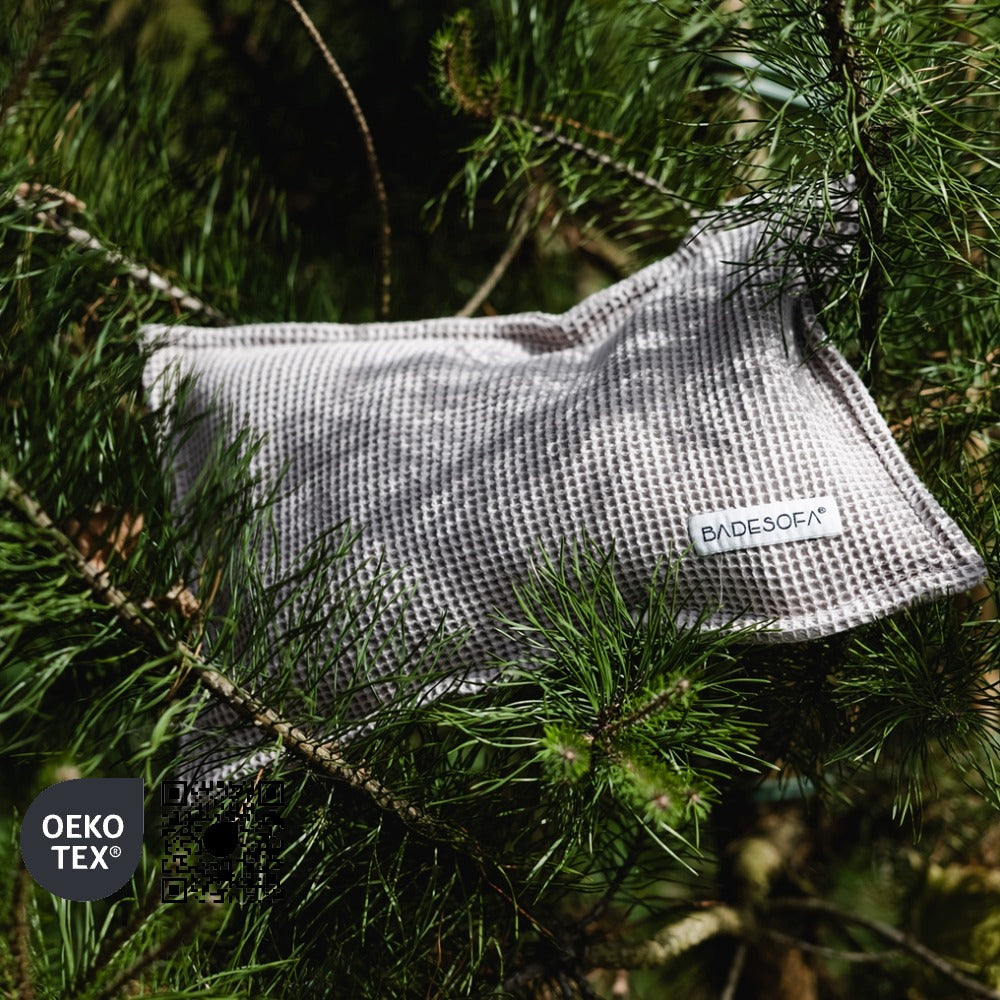 Handgefertigt aus Stoffresten unserer Handtuchproduktion steht das Zirbenkissen für nachhaltiges Design und bewusste Ressourcennutzung. Der Bezug aus 100 % Bio-Baumwolle im feinen Waffelpiqué umhüllt ein Innenkissen, gefüllt mit aromatischer Zirbe aus den österreichischen Alpen.